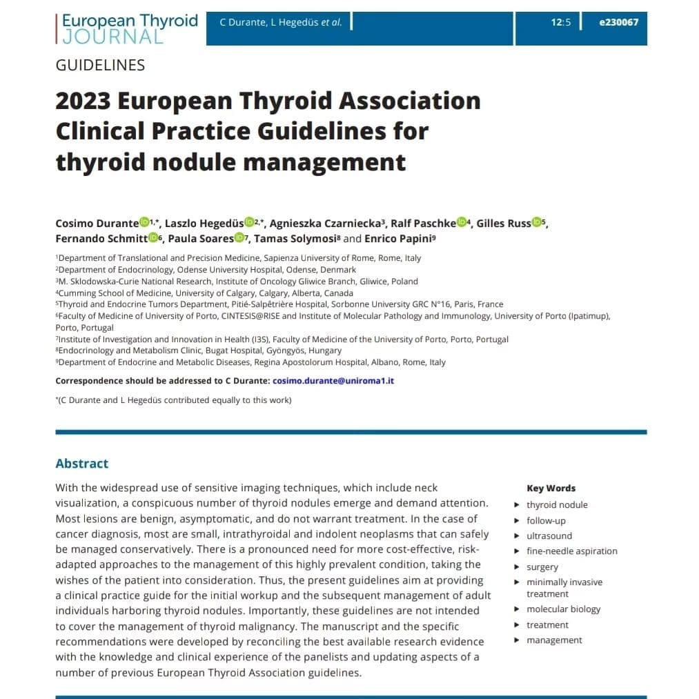 Piga M, Duntas LH, Fugazzola L, et al. European Thyroid Association Clinical Practice Guideline for the initial management and follow-up of thyroid nodules in adults. Eur Thyroid J. 2023;12(5):e230067.